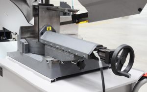 - Nastavljiva roka z vodilom lista žage, se nastavi na velikost obdelovanca