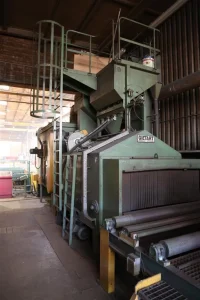 Univerzalni za odstranjevanje srha in čiščenje jeklenih profilov ali jeklenih plošč, s 4-jetnimi turbinami tipa C 350 vsaka 7,5 kW, vključno s krtačo in sesalno napravo, vključno z dovodnim valjčnim transporterjem in izstopnim valjčnim transporterjem