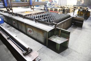 Plazemski rezalnik Voortman V304 (zmožen obdelave plošč do 3.000 mm x 6.000 mm) Portalni nosilec 5.000 mm in bočni nosilec X-vodilo (9.000 mm na obeh straneh stroja, vključno z dvojnimi linearnimi vodili, vijačnim sistemom zobnikov in gumijastim trakom) Miza za rezanje in odlaganje 3.800 mm x 6.240 mm Položaj 1: Enota za plazemsko rezanje Kjellberg SmartFocus400 (1 kos, avtomatska plinska konzola, skupaj z bazo podatkov o parametrih rezanja) Plazemska 3D enota (1 kos, vključno s 5 NC osi, Voortmanov nadzor višine, inteligentni sistem za določanje položaja gorilnika in 3D senzor trka, za priprave zvarov x, y, k in v) Vpenjalno mesto (1 kos, vpet v položaj 2, z ročno vpenjanje) Dušilec (1 kos, vključno z rezervoarjem 1,2L) Položaj 2: Gorilnik za avtogeno rezanje (1 kos, avtomatska plinska konzola, vžig in prebadanje, skupaj z bazo podatkov o parametrih rezanja) Voortmanov nadzor višine (1 kos, kapacitivni nadzor višine) Kompenzacija položaja (1 kos, servomotor, vključno z laserskim senzorjem) Enota za odsesovanje dima Donaldson DFPRO12 - 200L - (NOVO) Strojna in programska oprema (vključuje VACAM ‘Machine Edition’, VACAM ‘Office Edition’, programski modul urejevalnika VACAD, programsko opremo za razporejanje VANEST) Programska oprema za samodejni nesting SigmaNEST PowerPack Zaščitne naprave (varnostni odbijači, kabel za zaustavitev v sili) Letnik 2015 Tloris V304